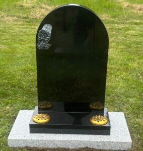 A Round top headstone with a hand etched Barn Owl top left. The owl design can be changed for other personal hand etched designs at similar cost.